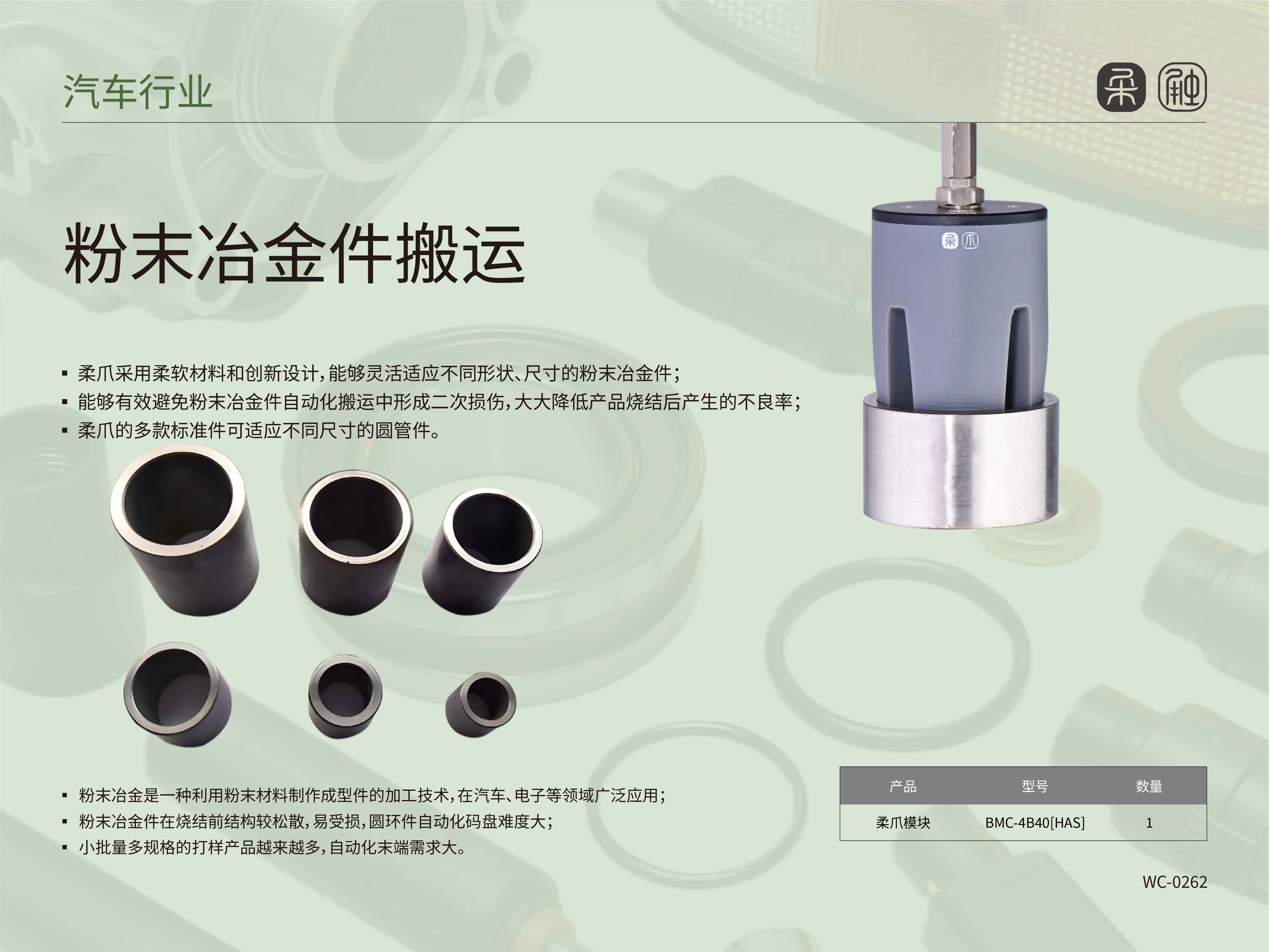 柔爪采用柔软材料和创新设计,能够灵活适应不同形状、尺寸的粉末治金件;