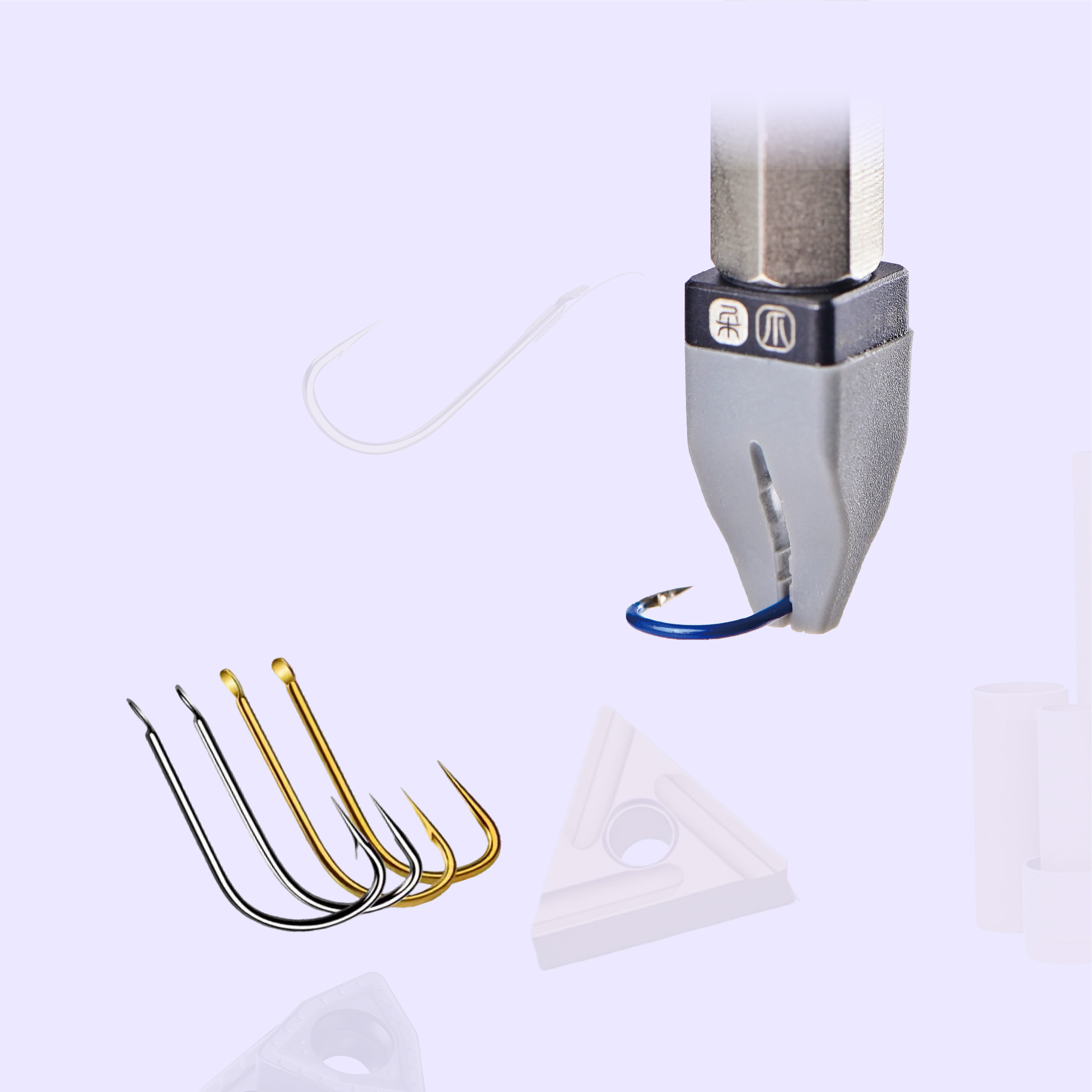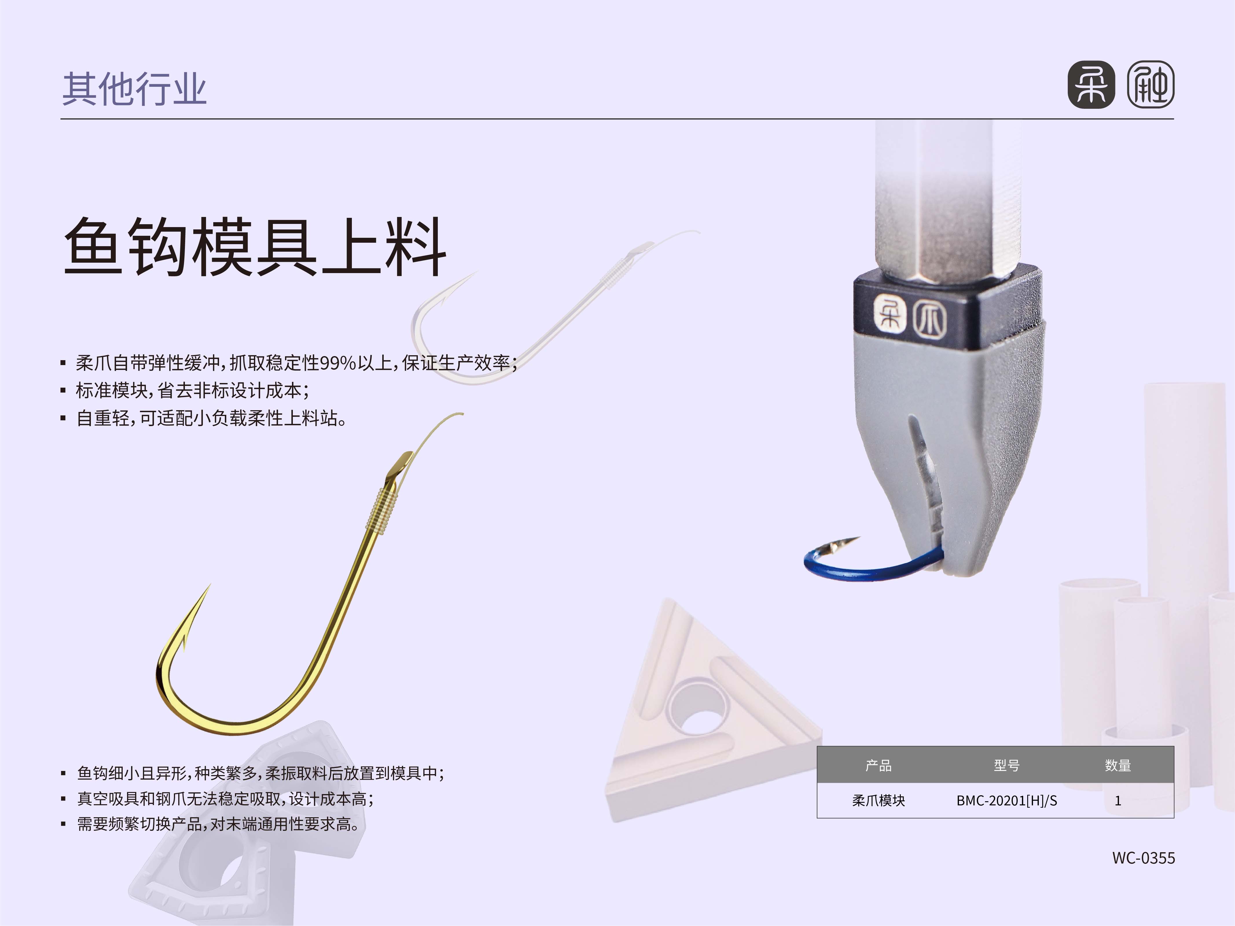 鱼钩细小且异形,种类繁多,柔振取料后放置到模具中;