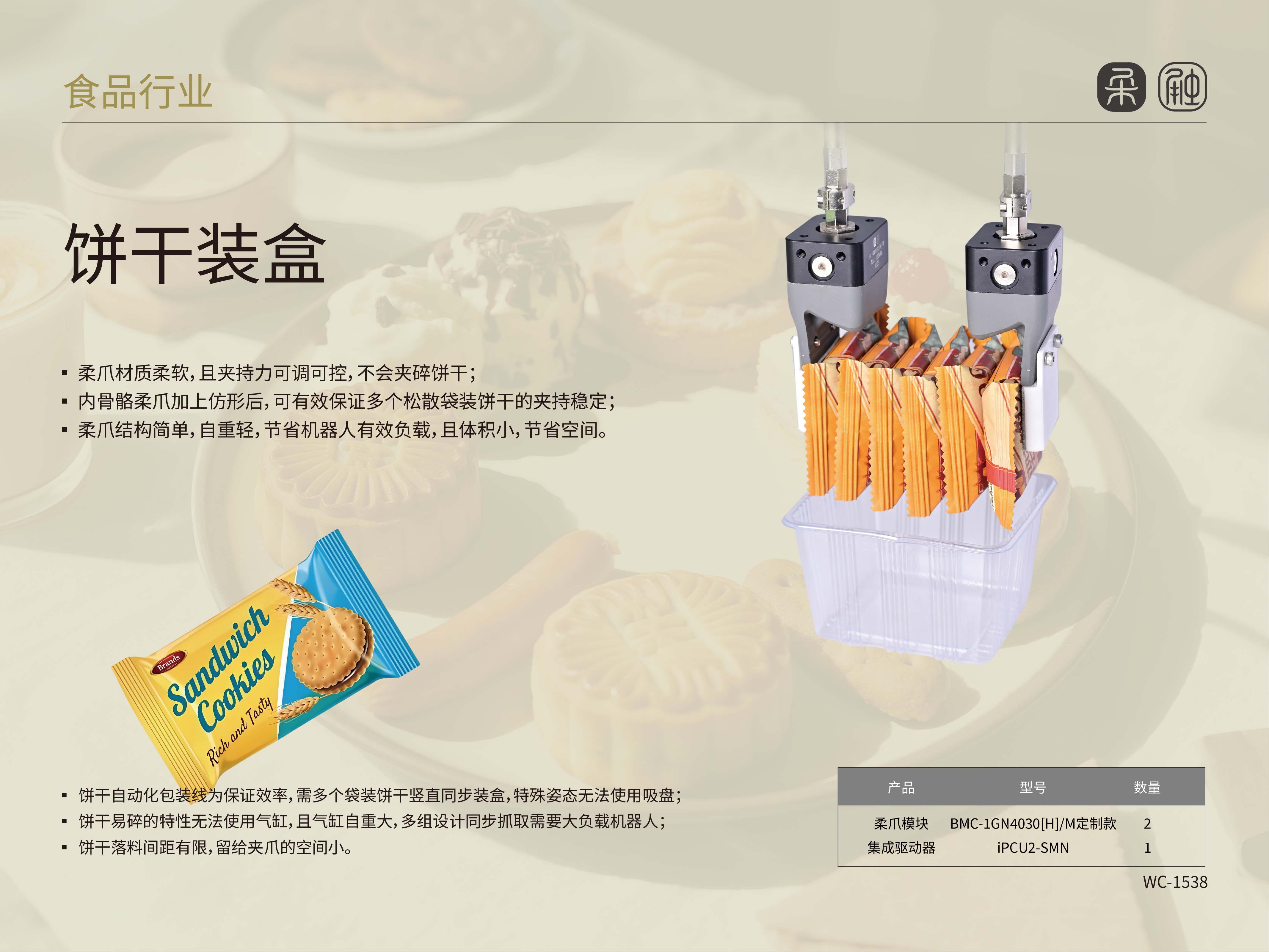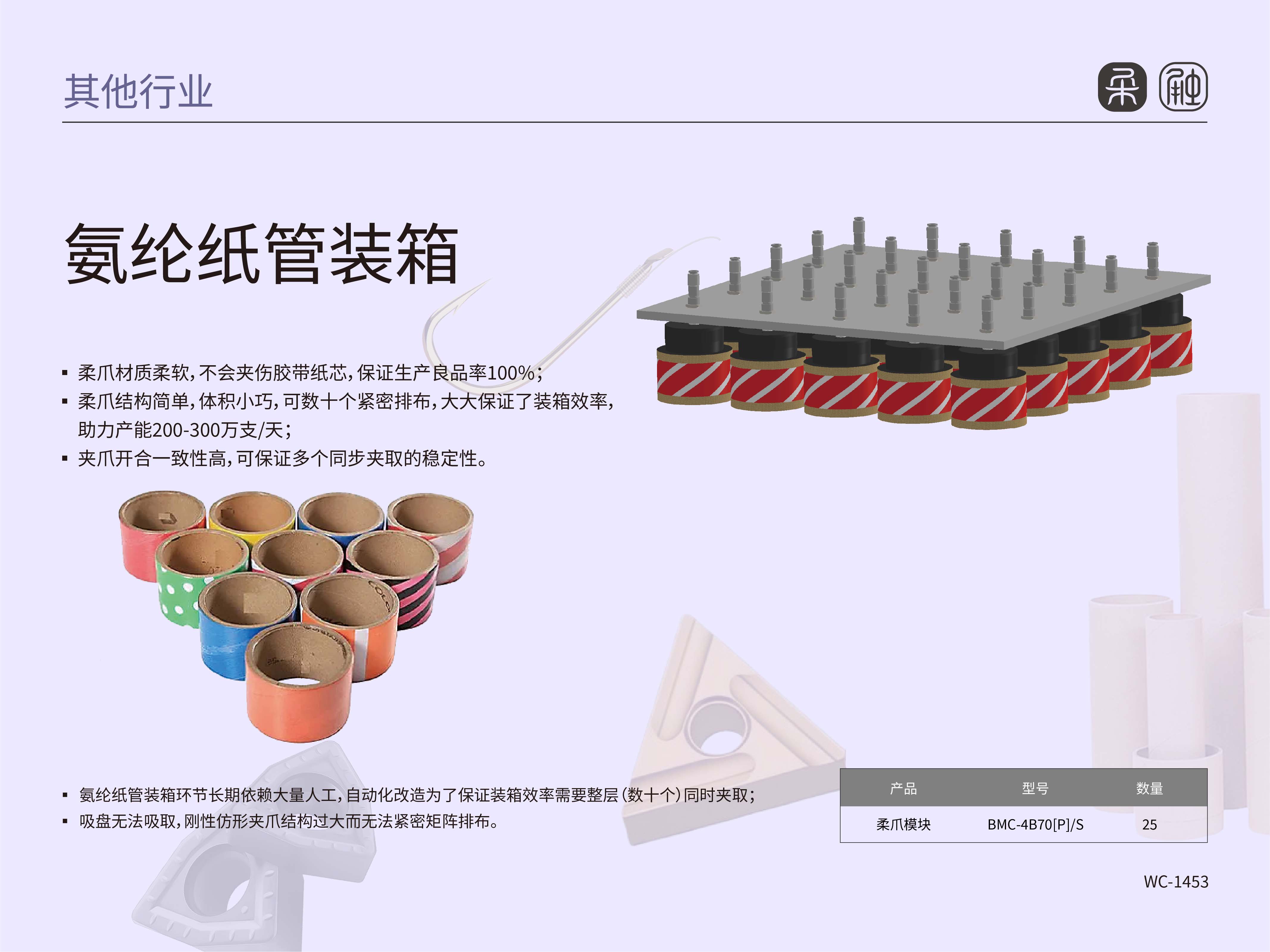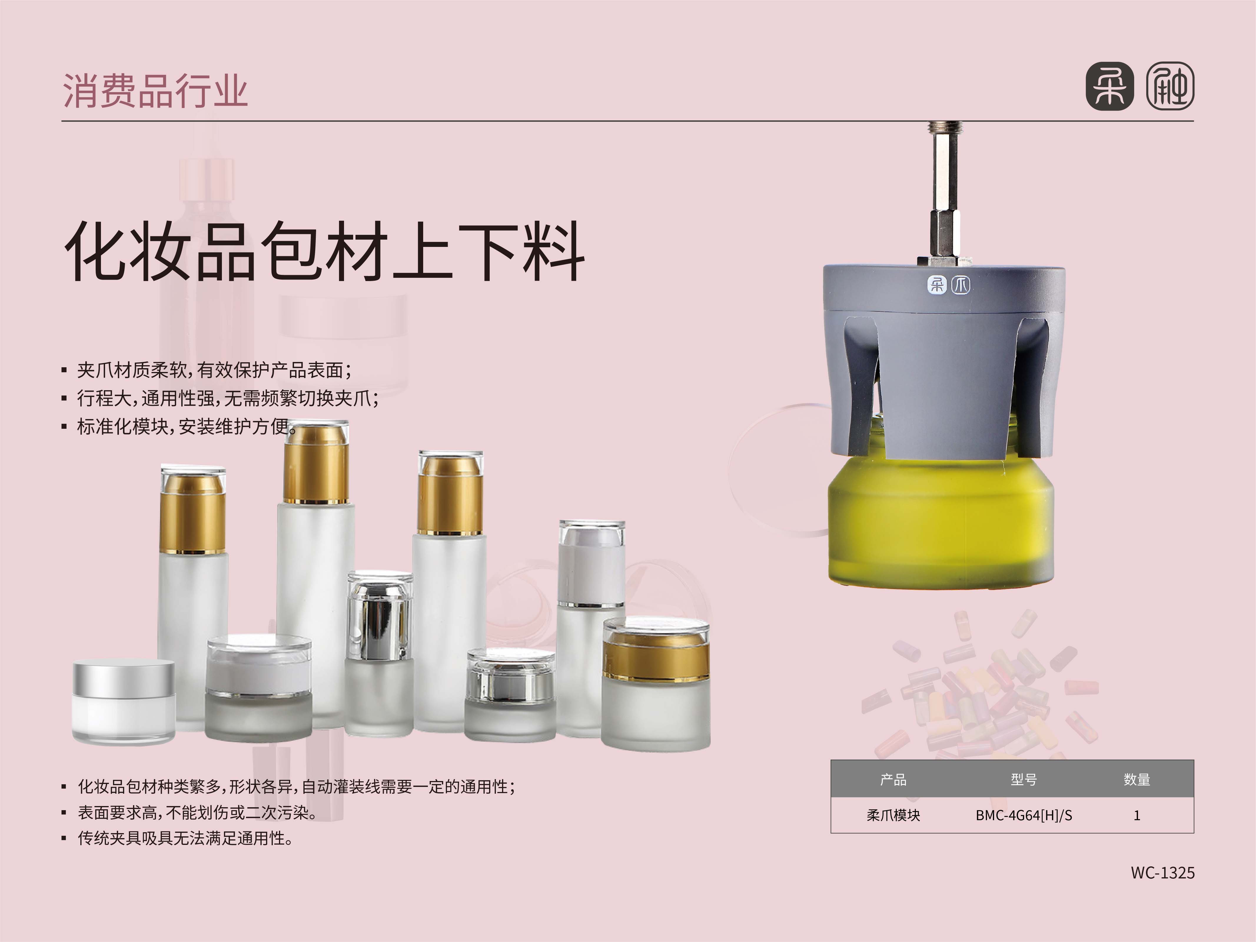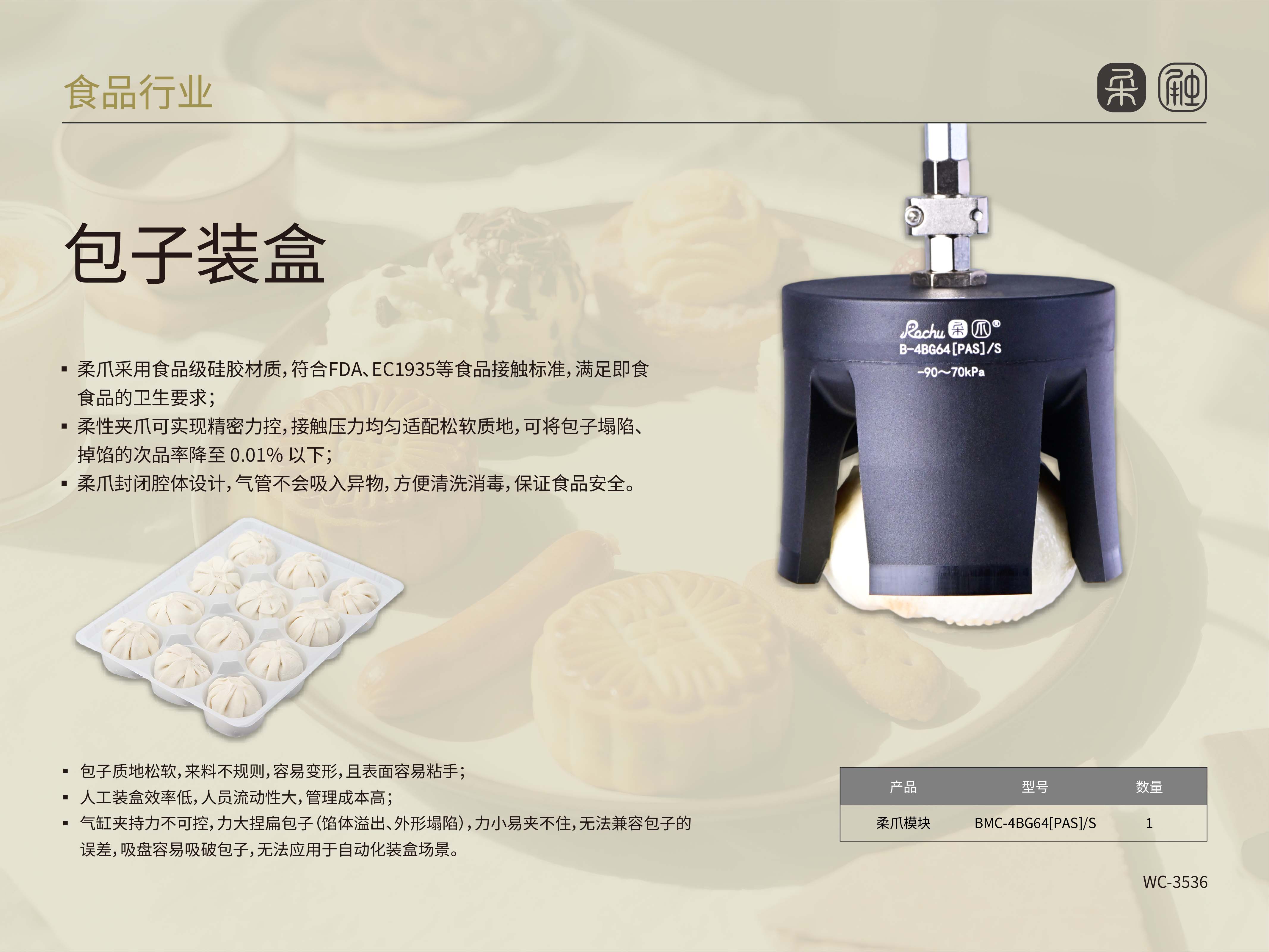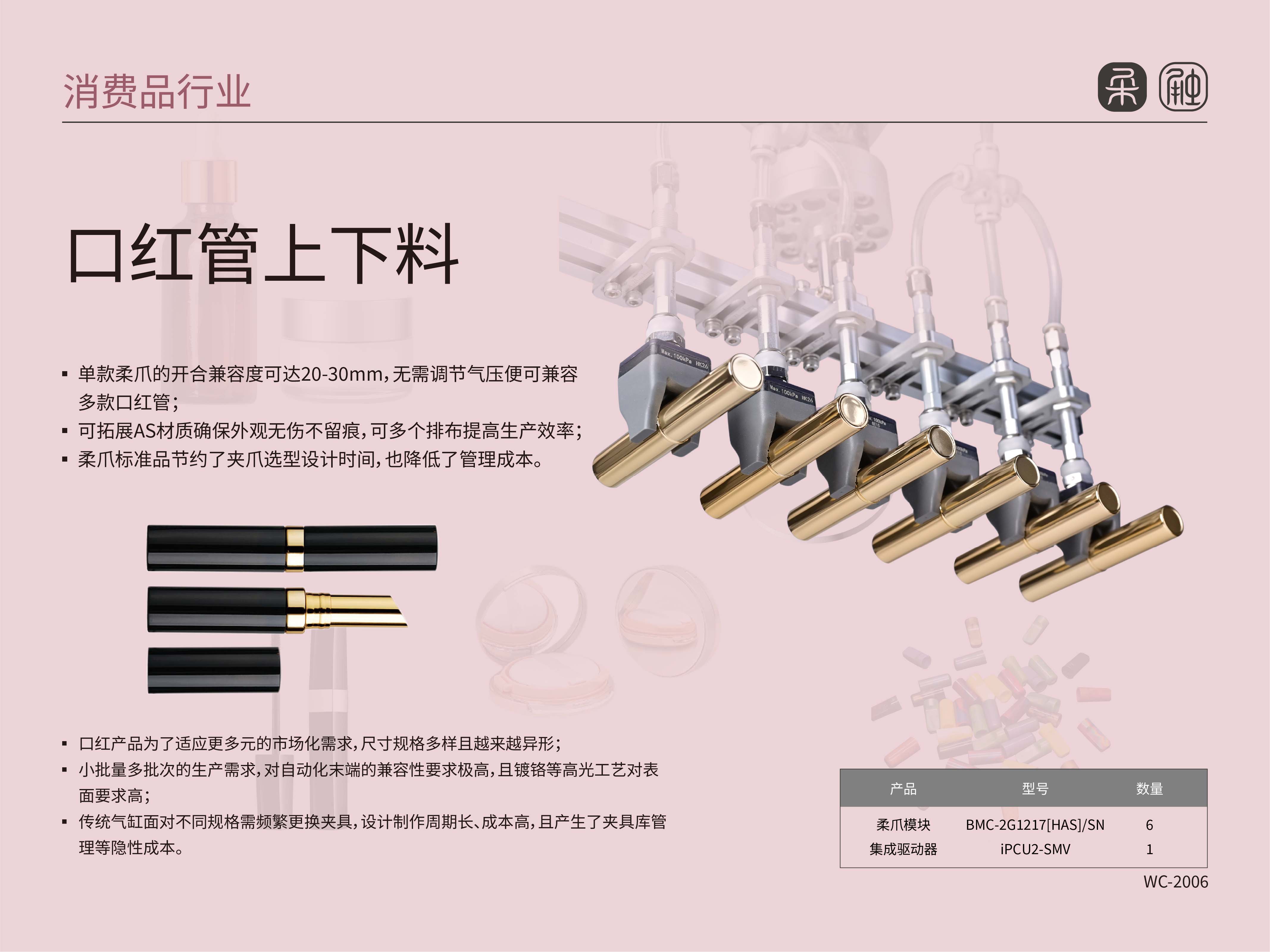 柔爪体积小巧可紧密排布,相对真空吸具方案节省了设计成本,降低了耗气量;