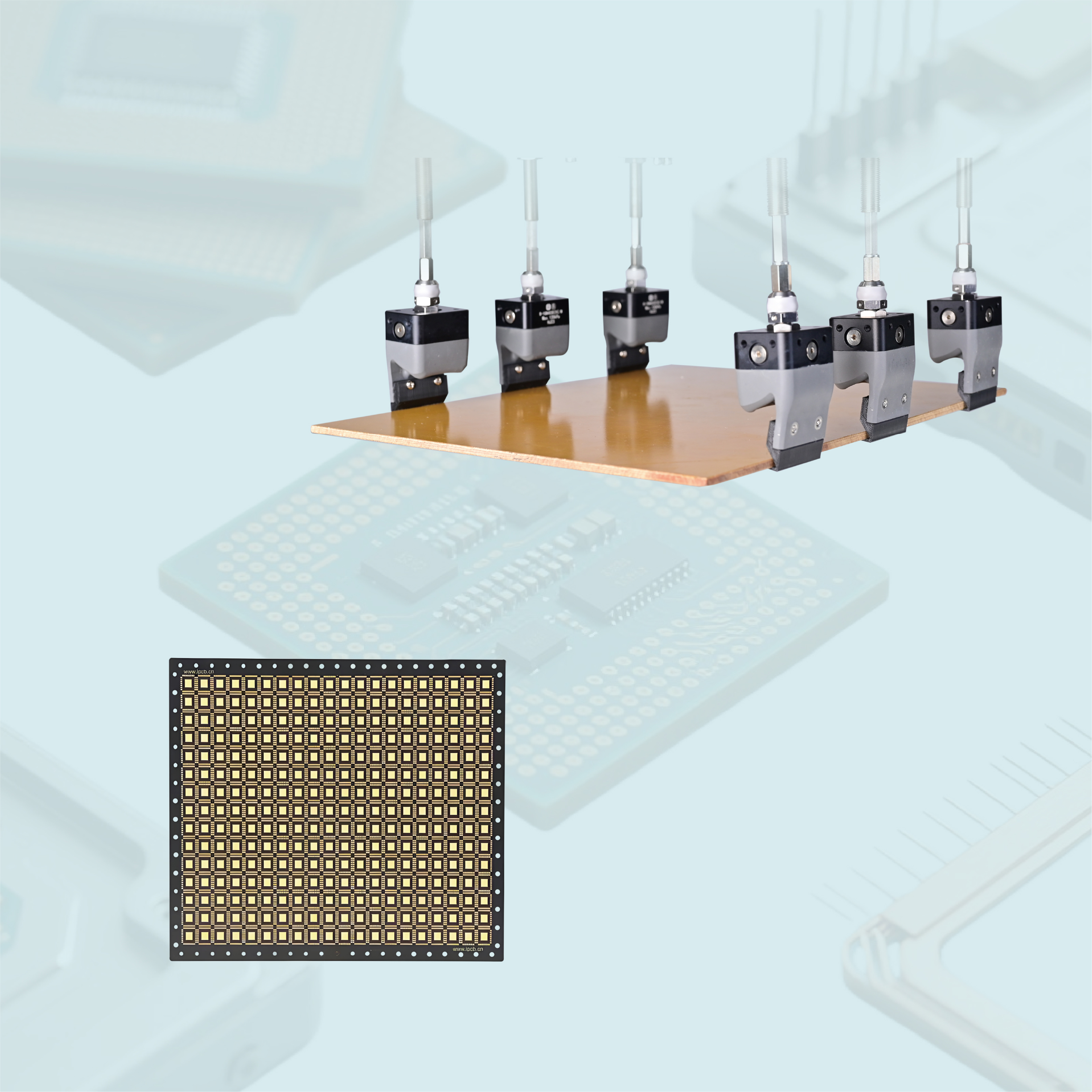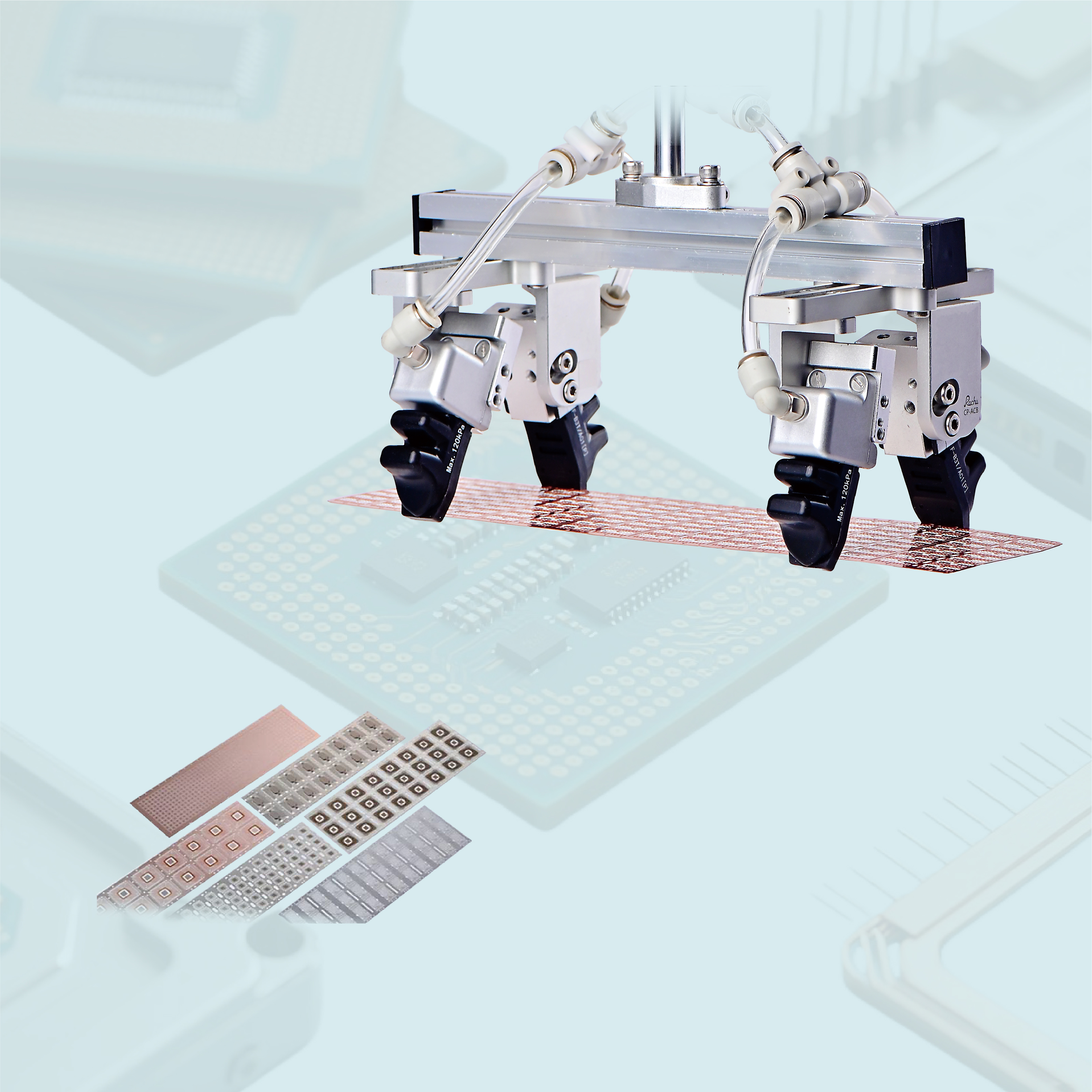 柔爪体积小巧,可以多个联排或矩阵排布,完美适配料盘间隙,无需变更料盘,保证生产效率;