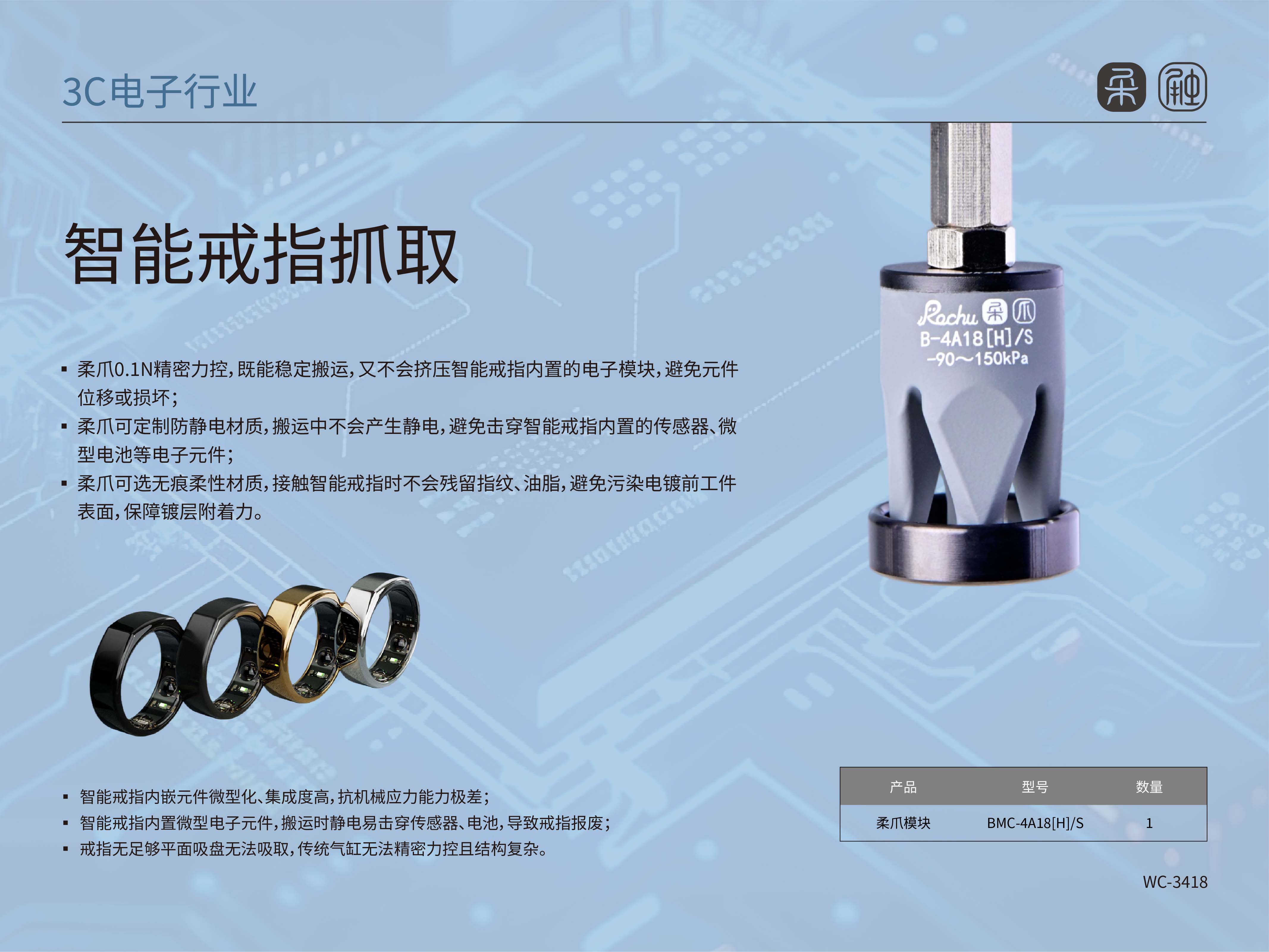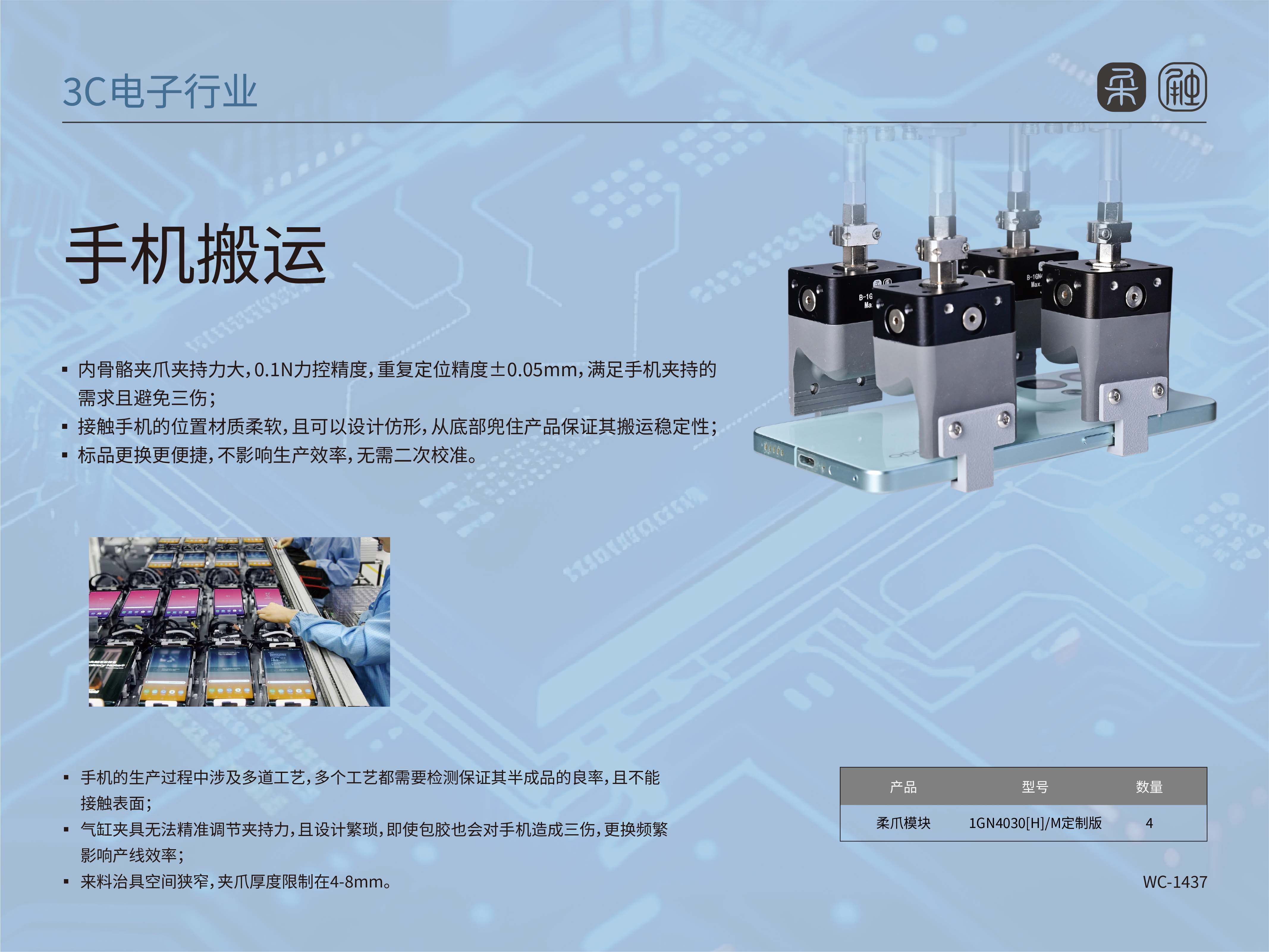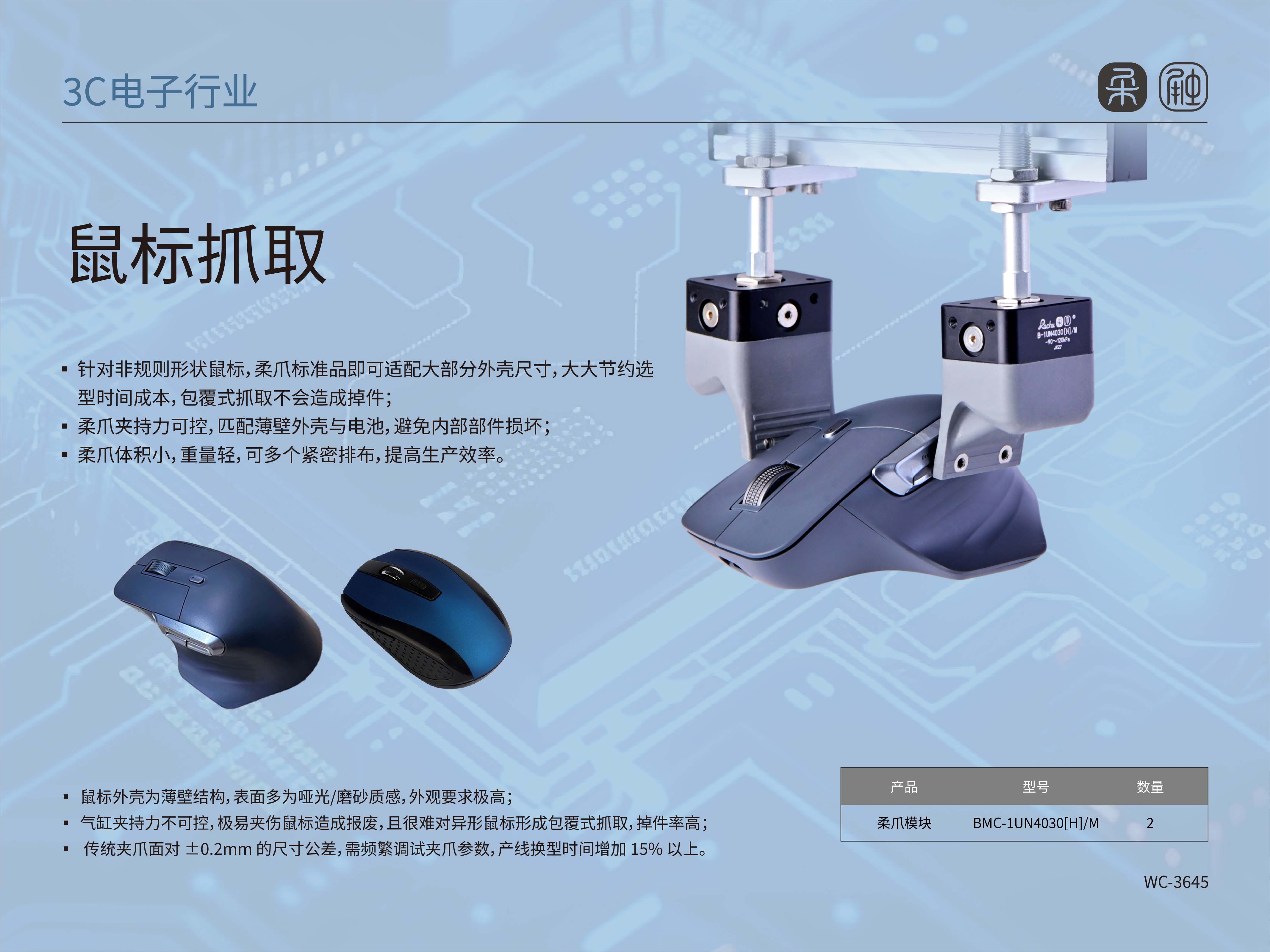 柔触柔性夹爪支持高精度定位(土0.05mm)的自动化产线需求,减少因搬运误差导致的工序中断。