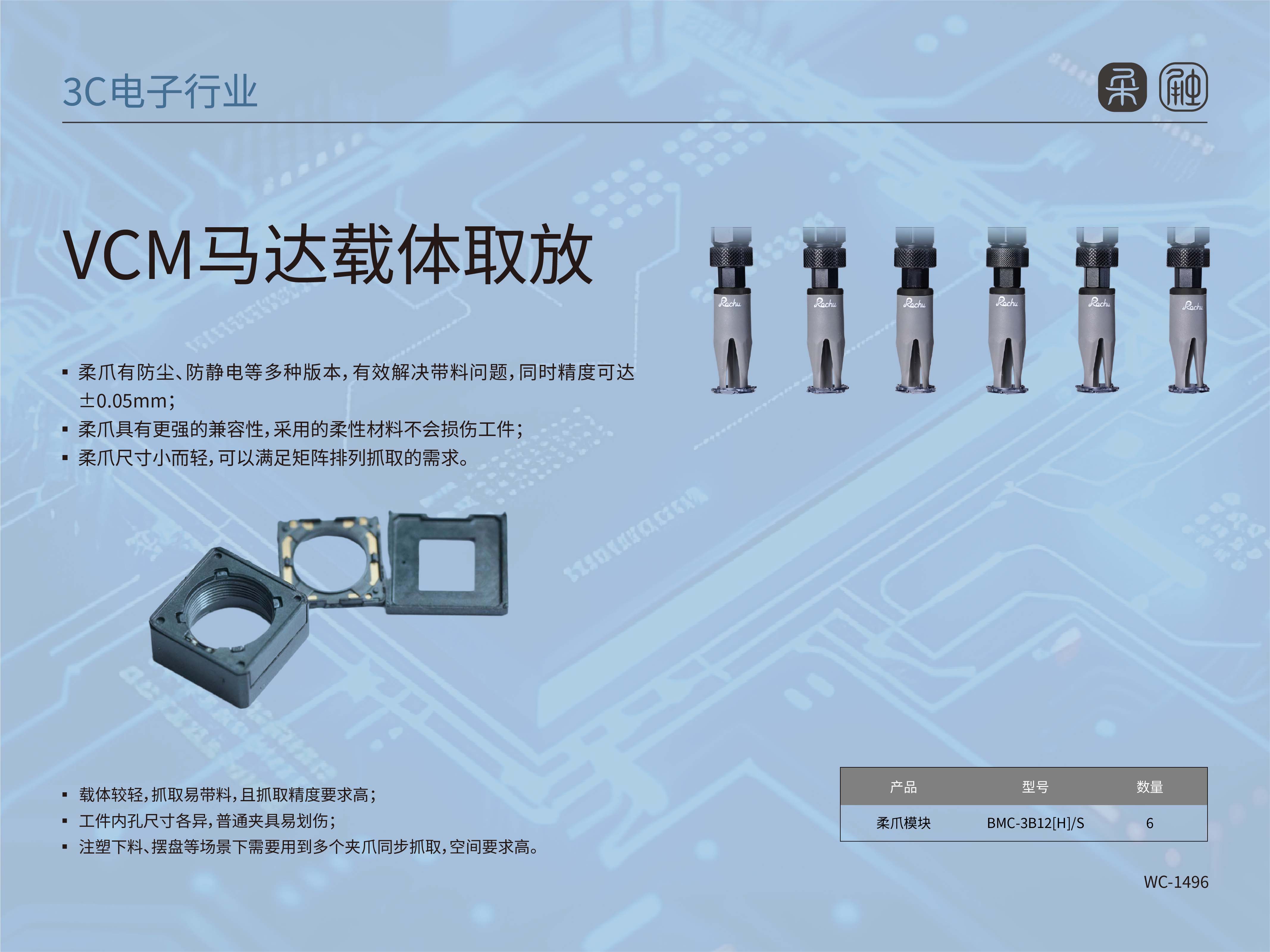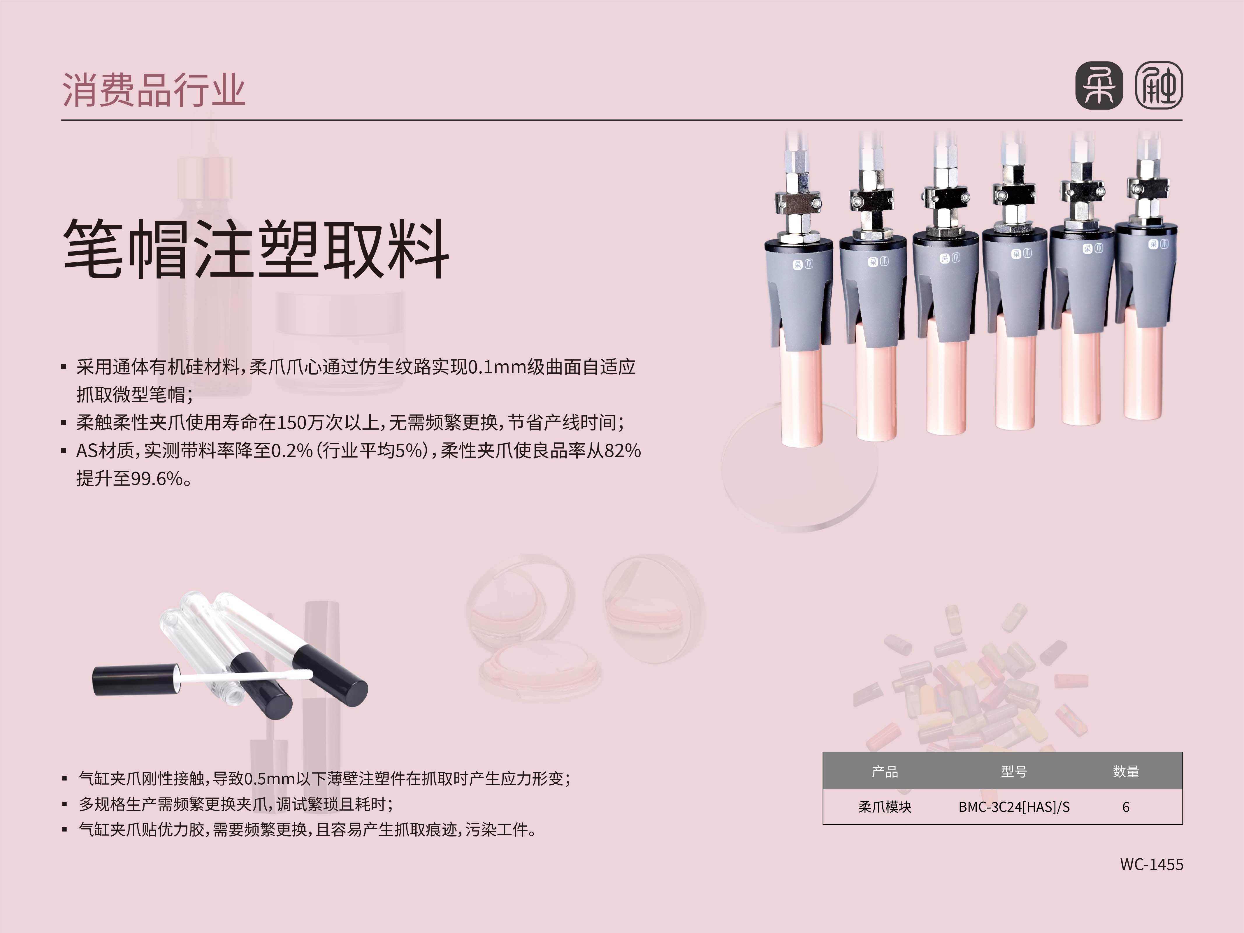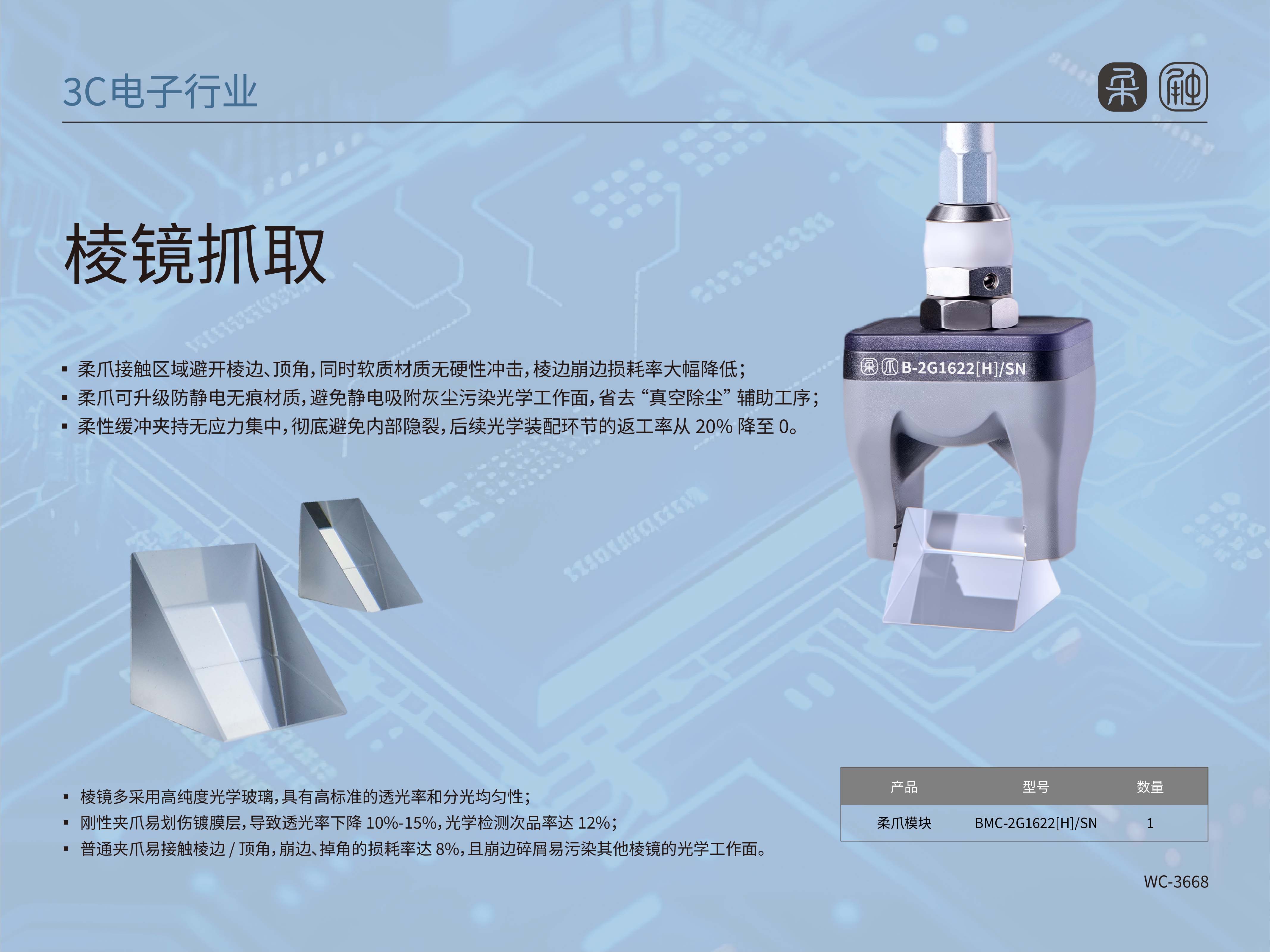 柔爪有防尘、防静电等多种版本,有效解决带料问题,同时精度可达±0.05mm;
