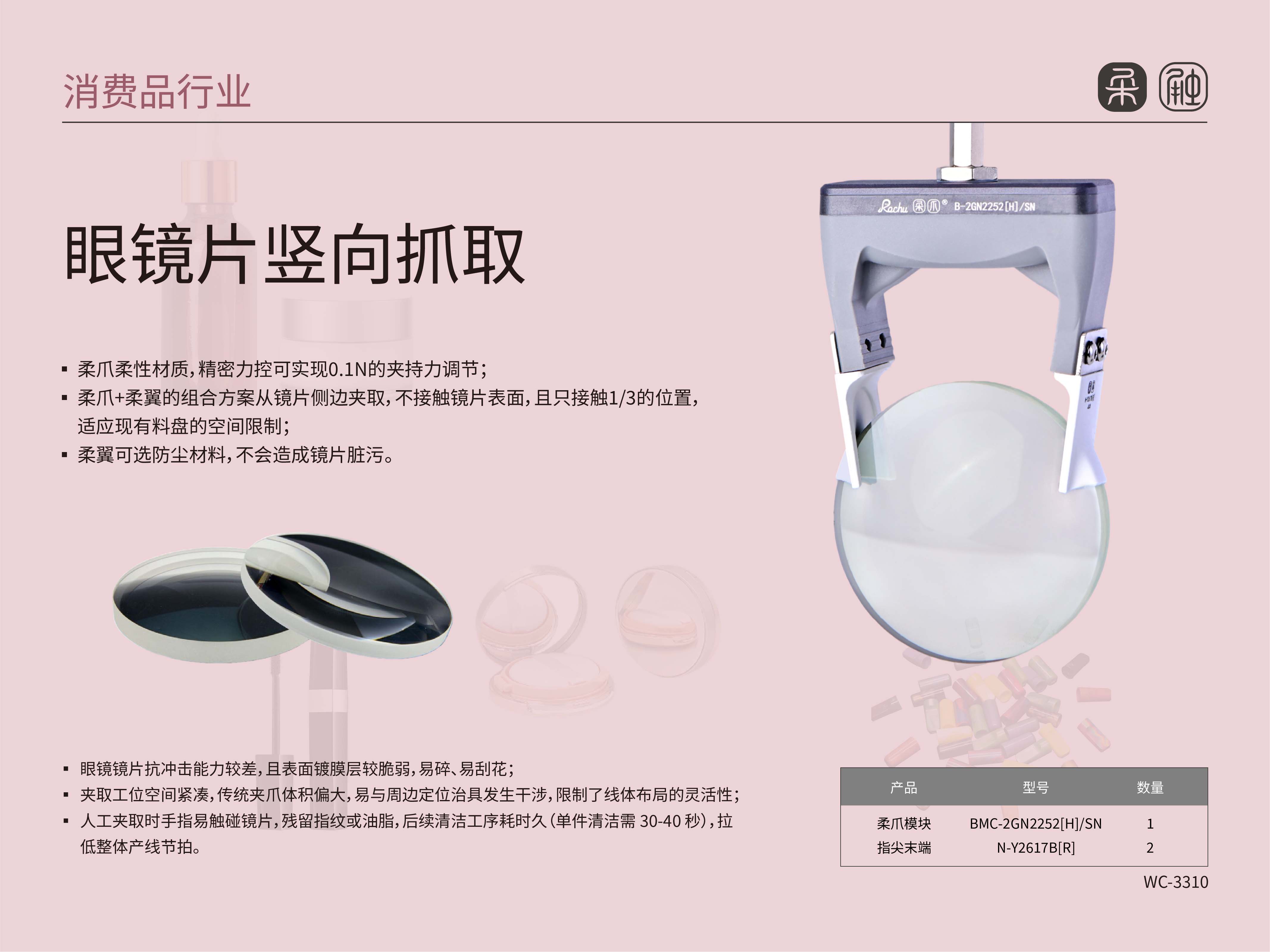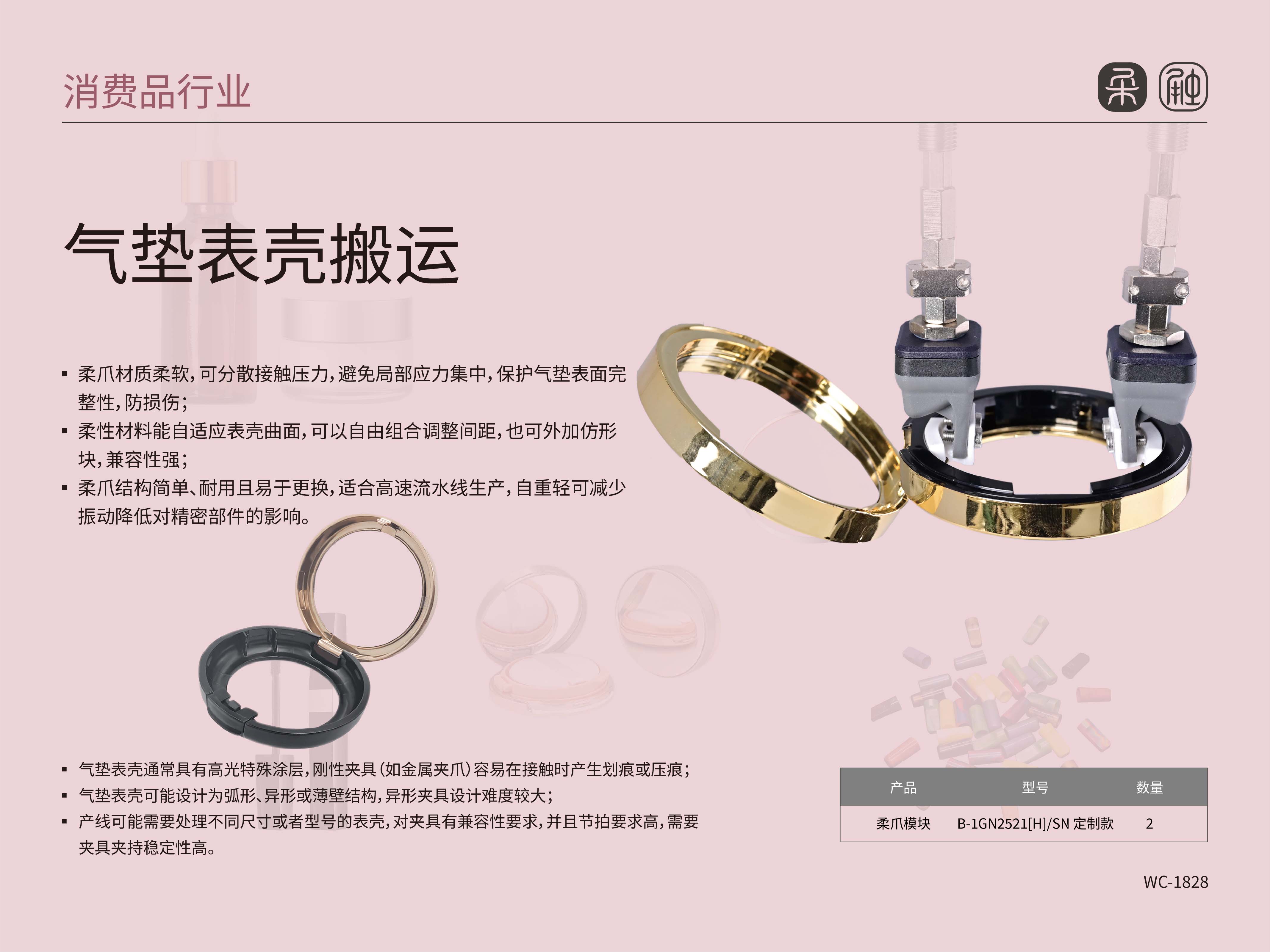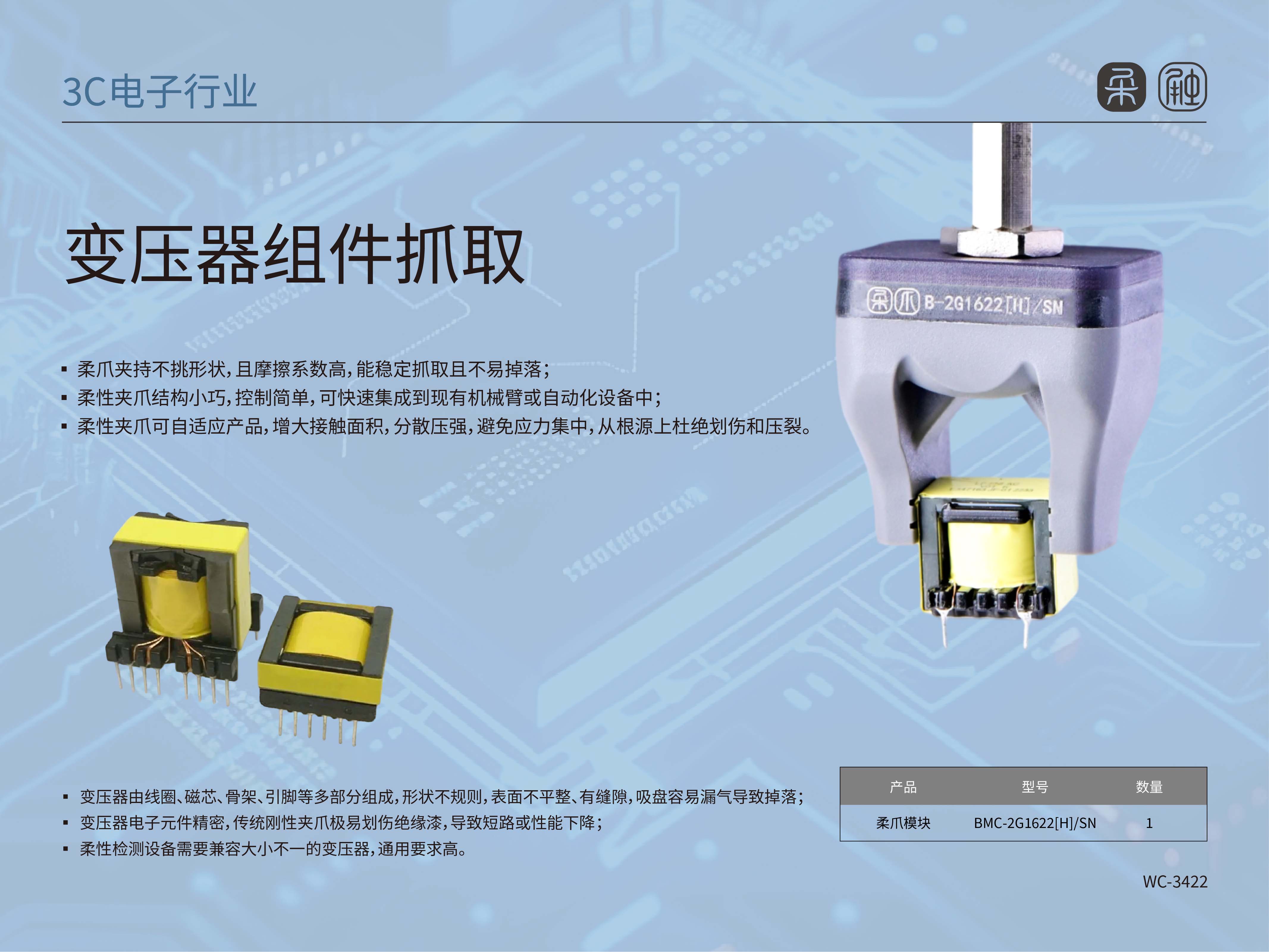 柔性夹爪不接触产品表面,不会夹伤或造成脏污,良率100%;