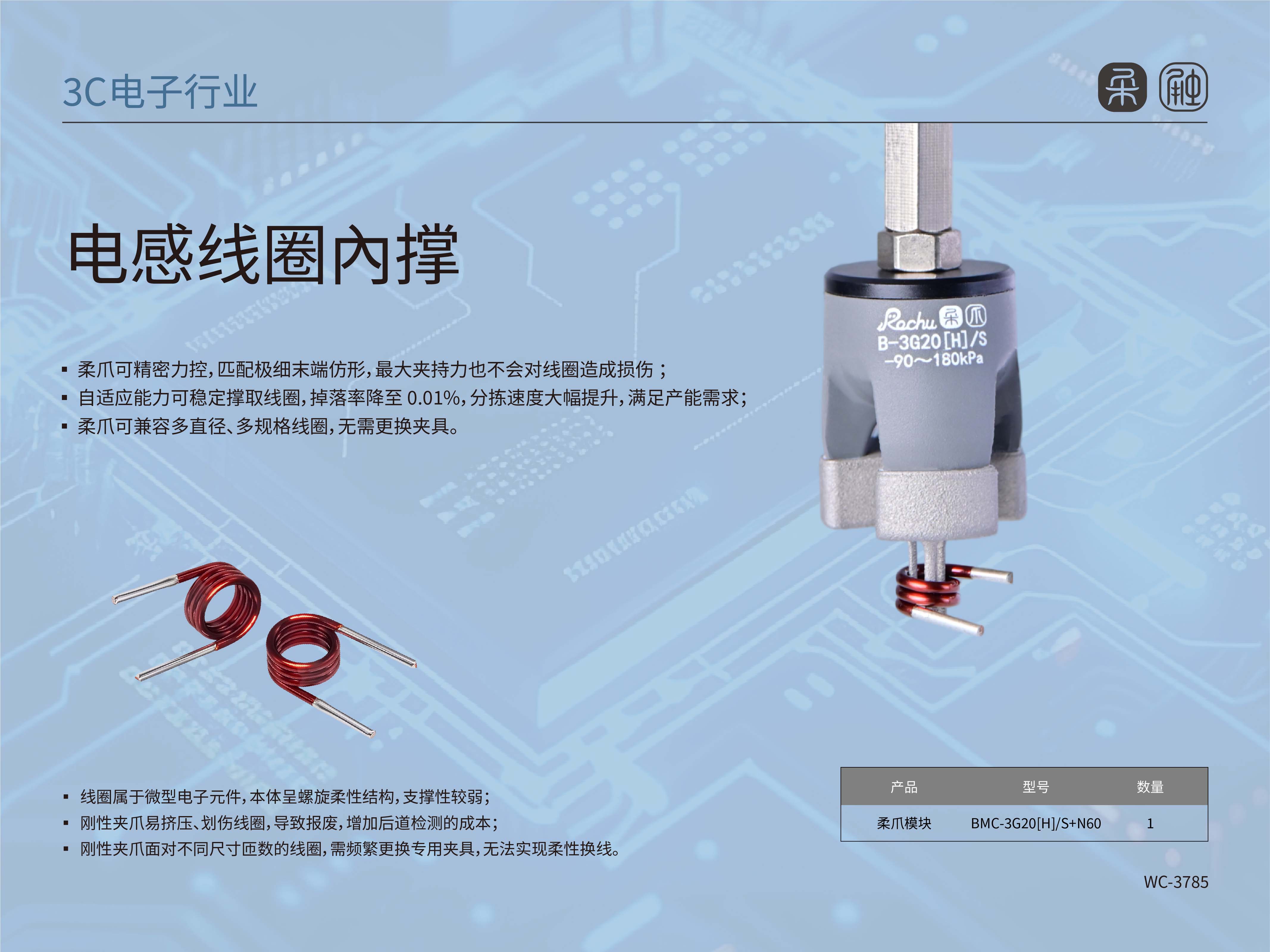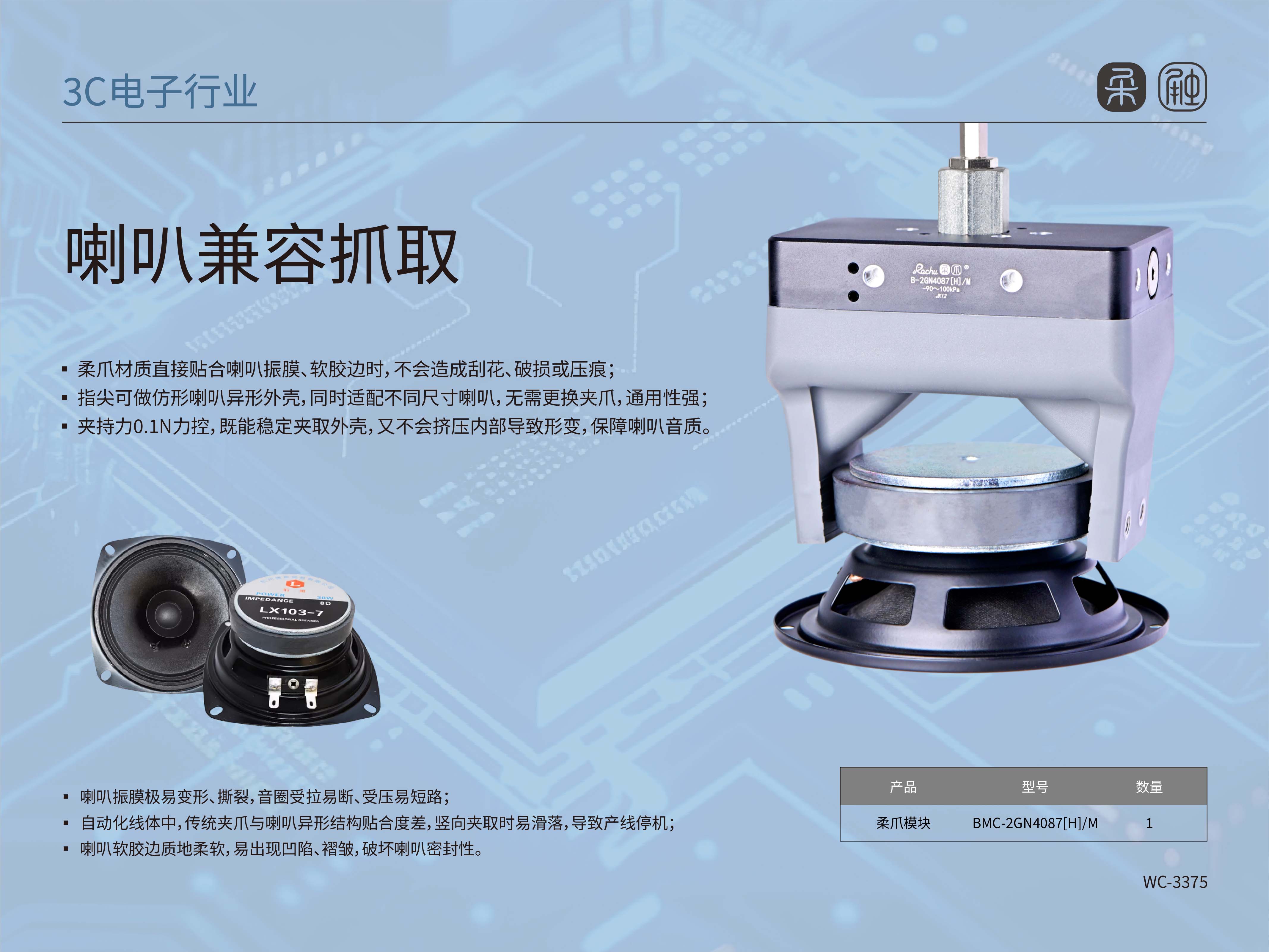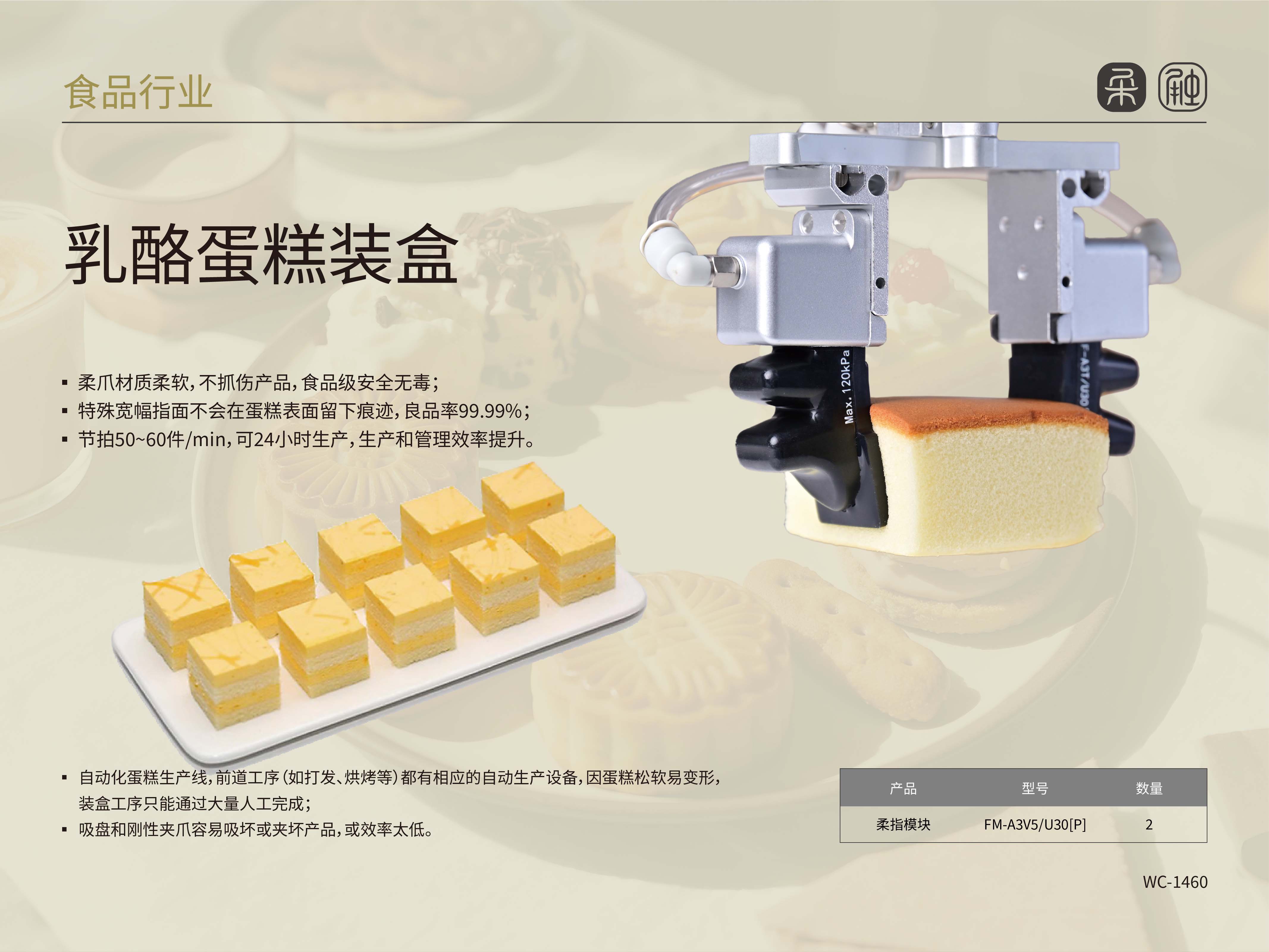 柔性夹爪不接触产品表面,不会夹伤或造成脏污,良率100%;