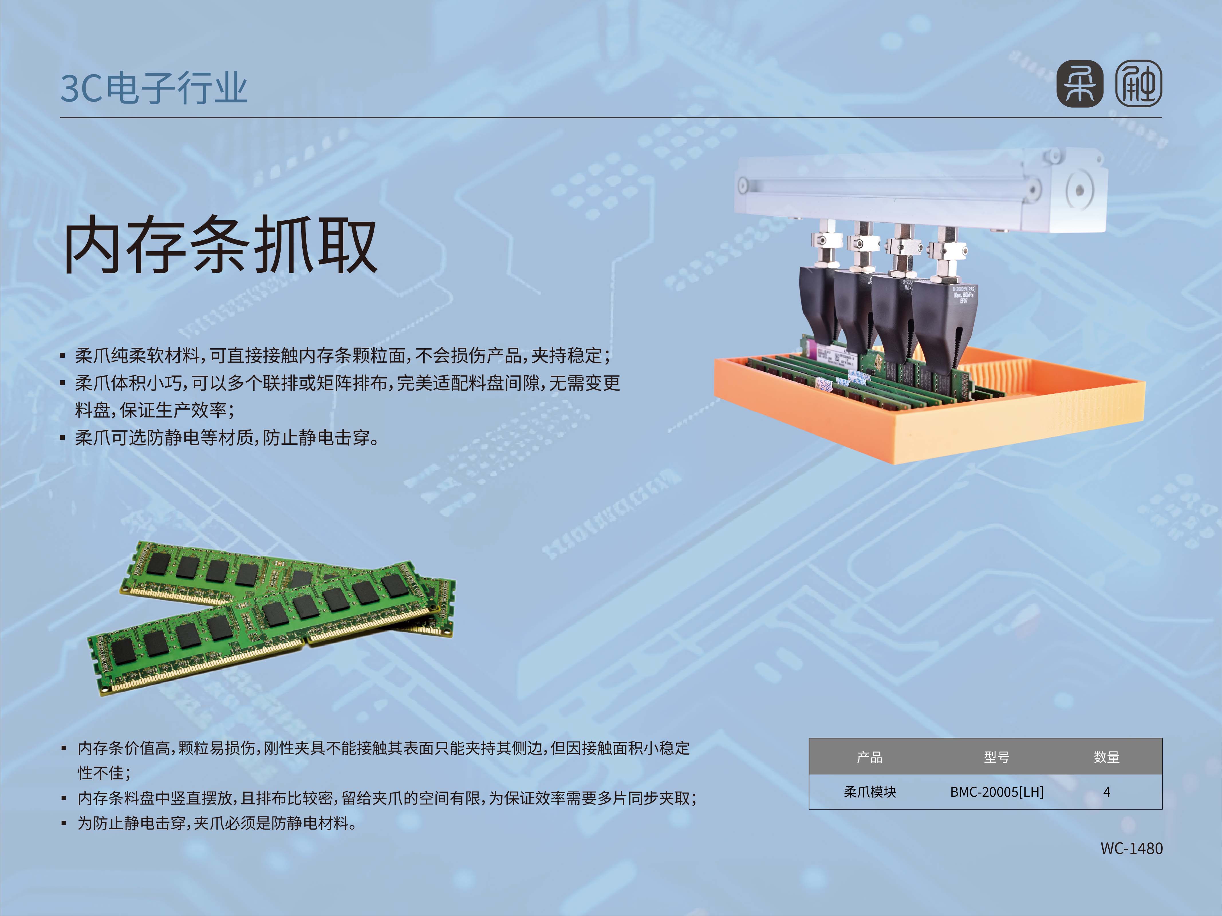 柔爪纯柔软材料,可直接接触内存条颗粒面,不会损伤产品,夹持稳定;
