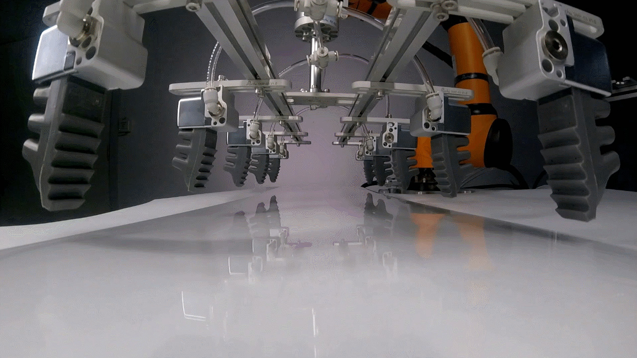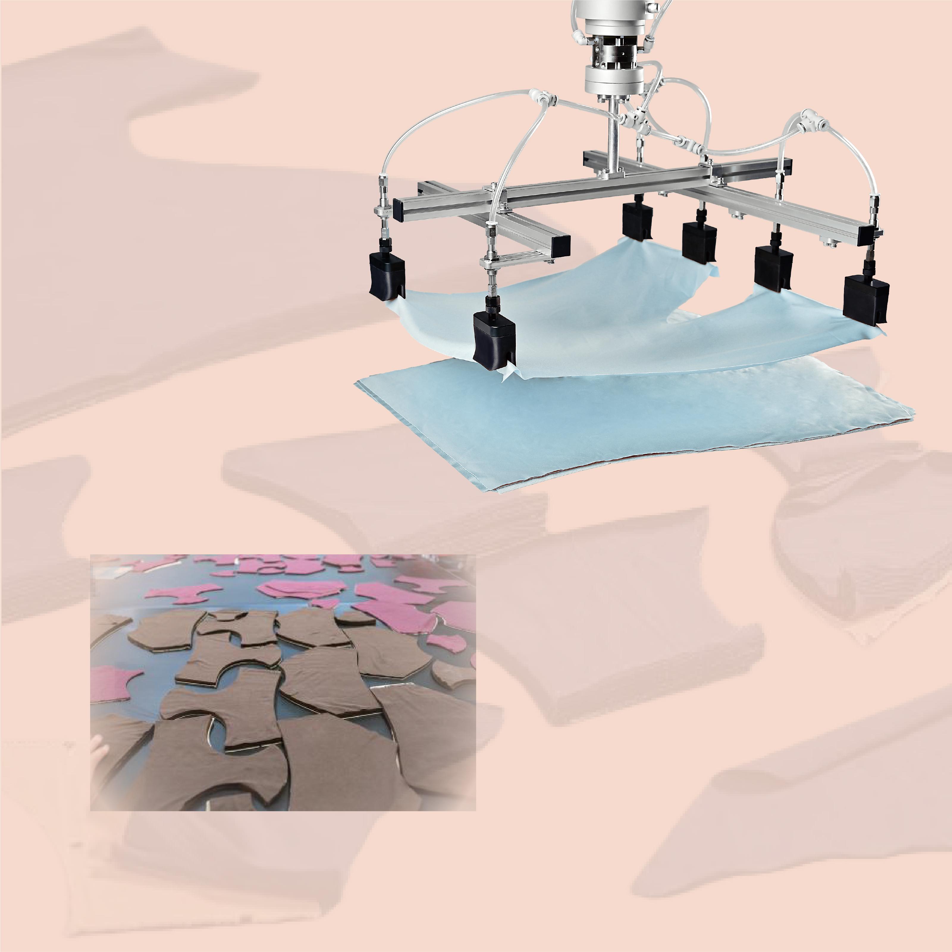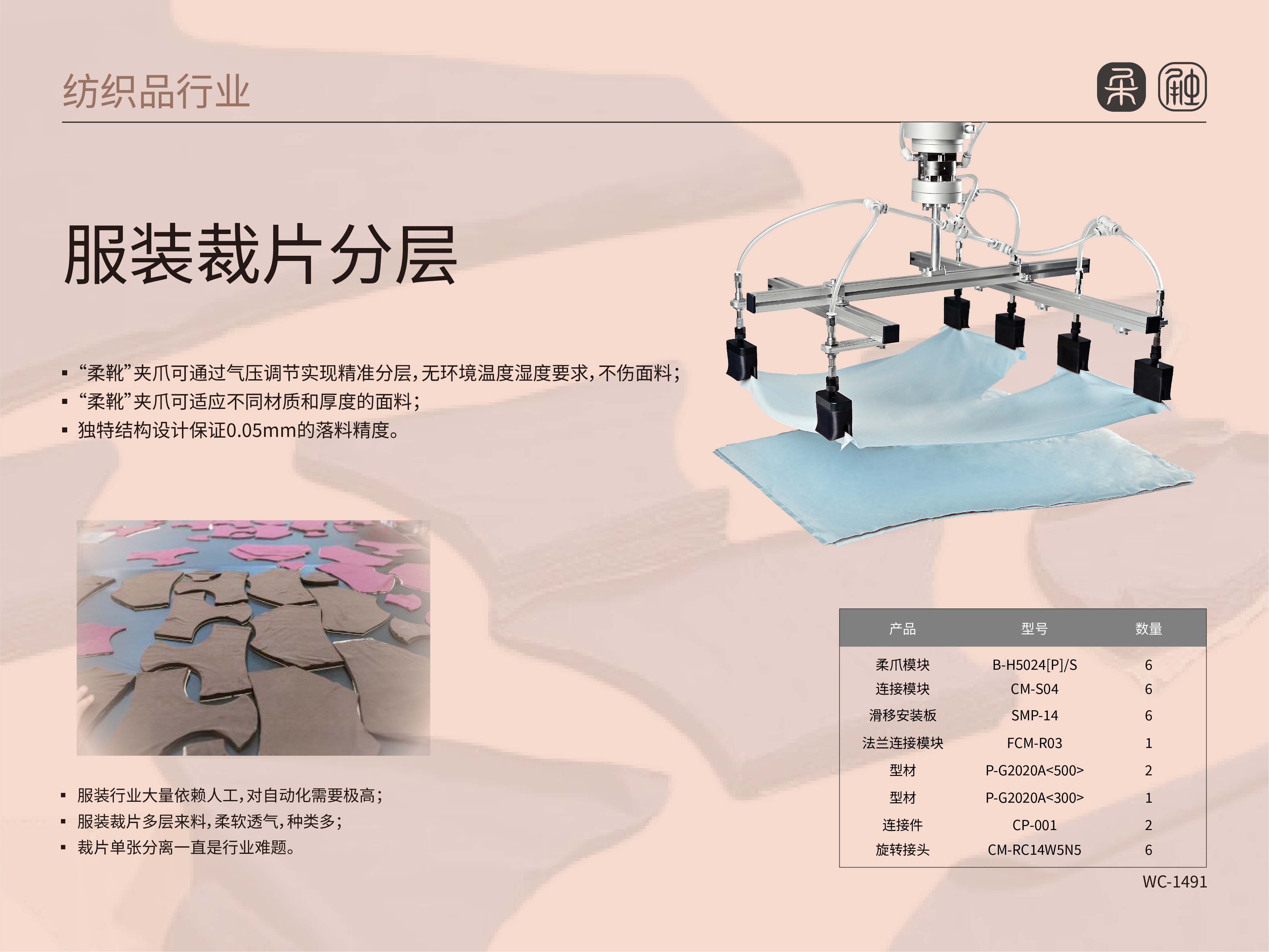 “柔靴”夹爪可通过气压调节实现精准分层,无环境温度湿度要求,不伤面料;