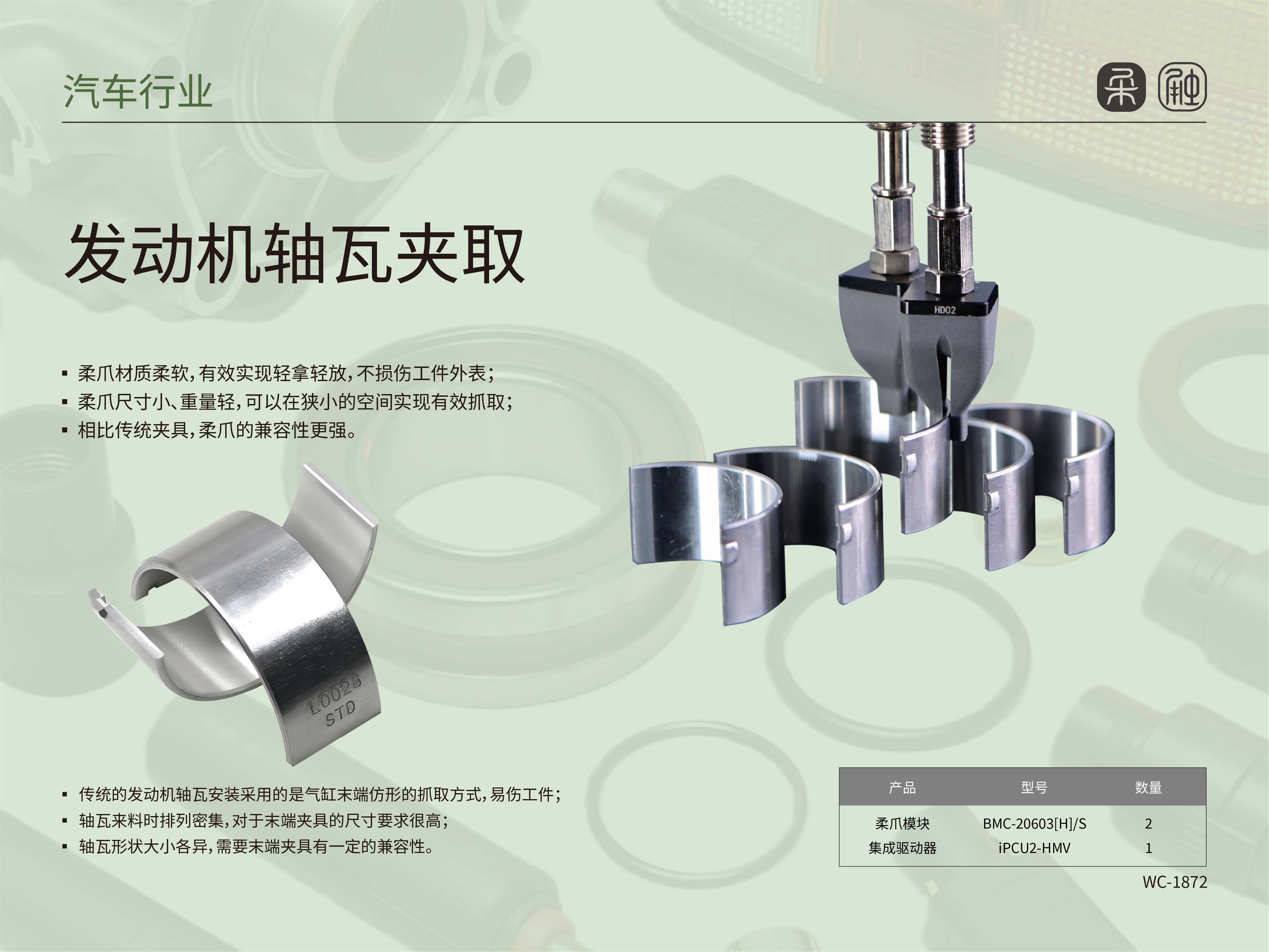传统的发动机轴瓦安装采用的是气缸末端仿形的抓取方式,易伤工件;