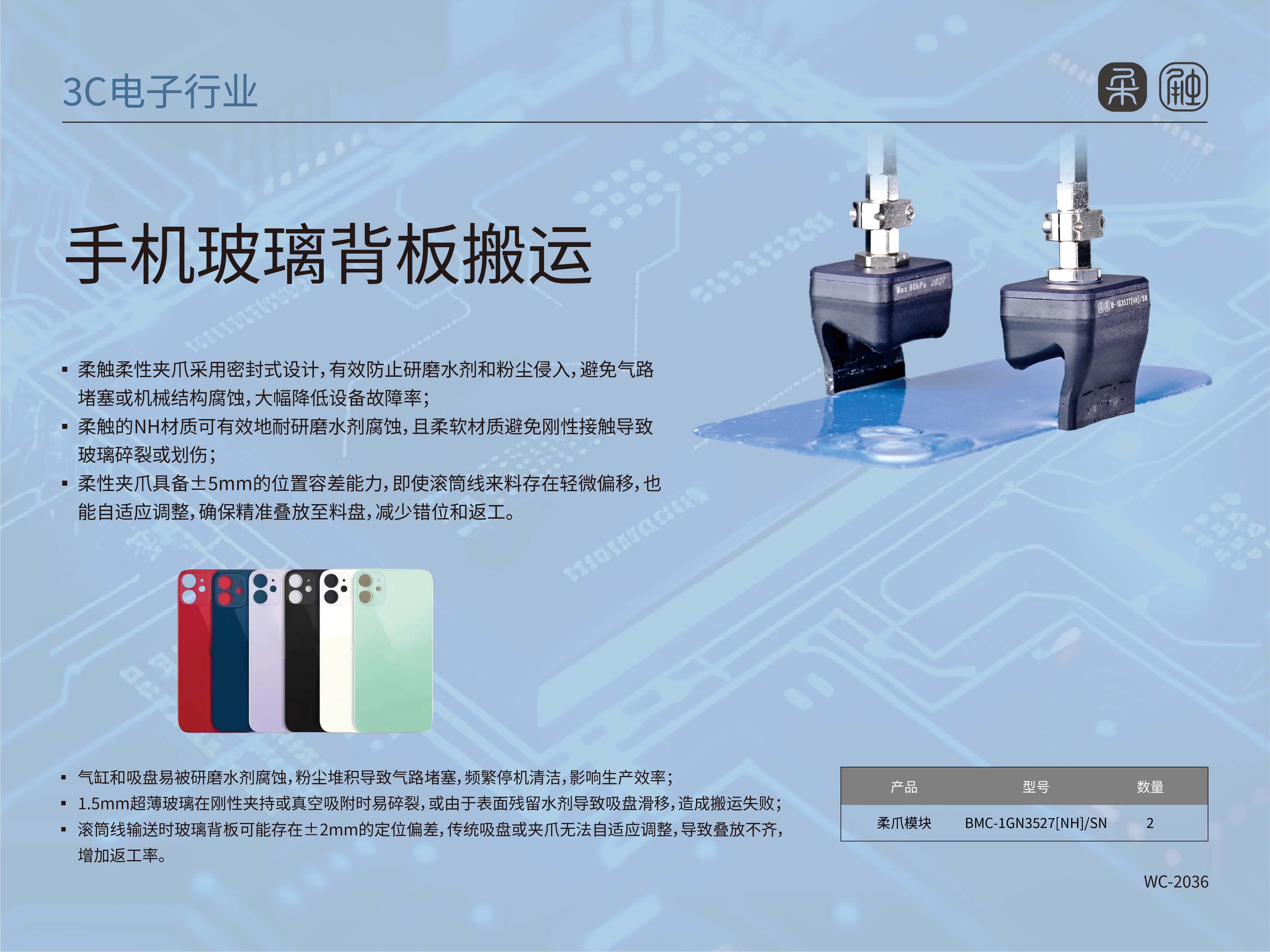 柔触采用无痕材质与自适应抓取设计可均匀分散夹持力,消除传统吸盘或气缸导致的屏幕压痕、划痕问题;