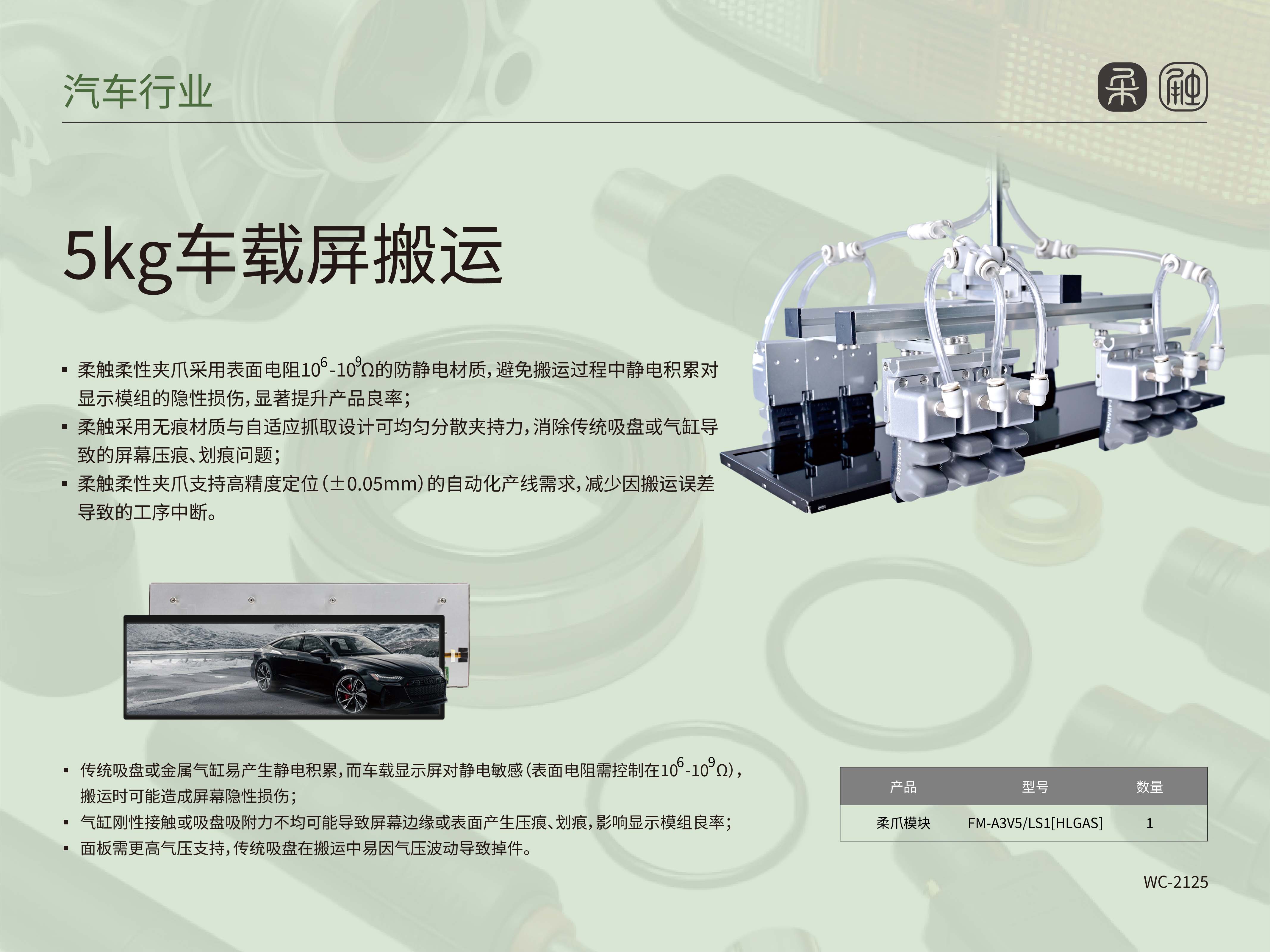 传统吸盘或金属气缸易产生静电积累,而车载显示屏对静电敏感(表面电阻需控制在10°-10Q),搬运时可能造成屏幕隐性损伤;