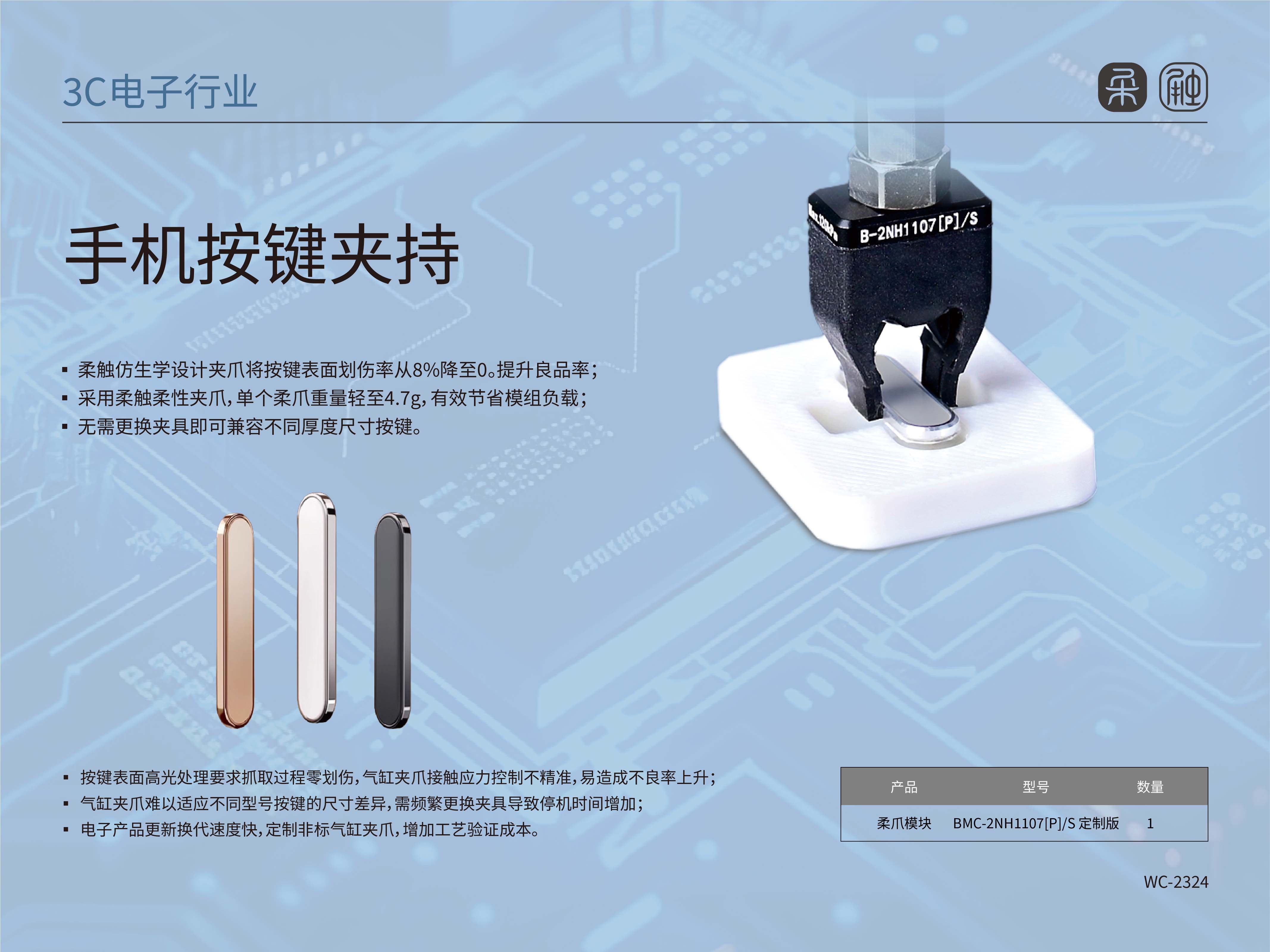 柔触仿生学设计夹爪将按键表面划伤率从8%降至0。提升良品率;